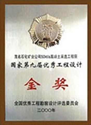 国内非金属矿行业第一个全国优秀工程设计金奖。