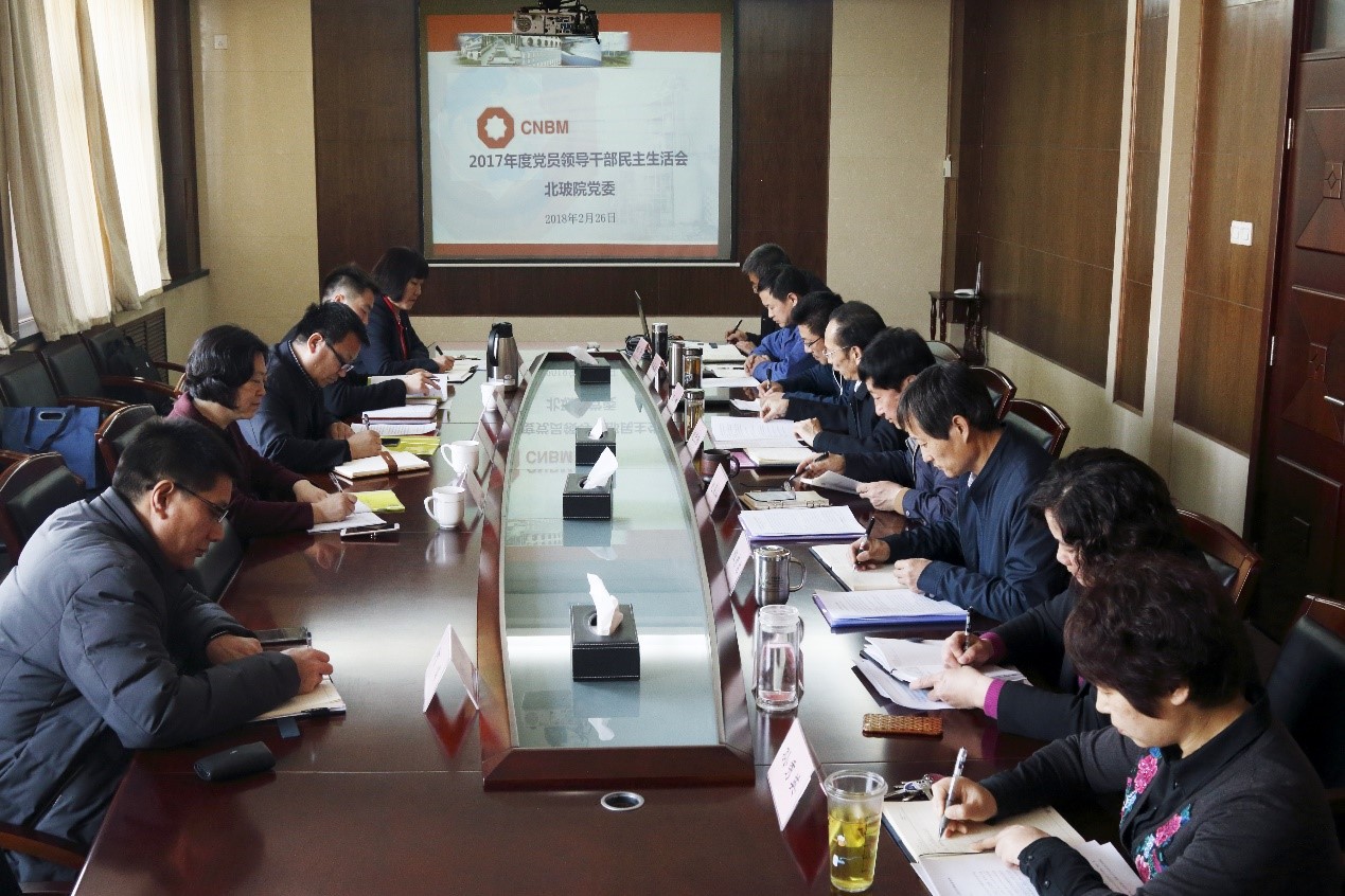 - 2月26日下午,北玻院党委召开2017年度民主生活会,中材股份纪委书记王迎财、纪检审计部高级经理周鹏,心博(中国)XINBO·官方网页版纪委副书记、党群部部长赵春英到会指导,公司领导班子成员参加了民主生活会。会议由公司党委书记赵长胜主持。