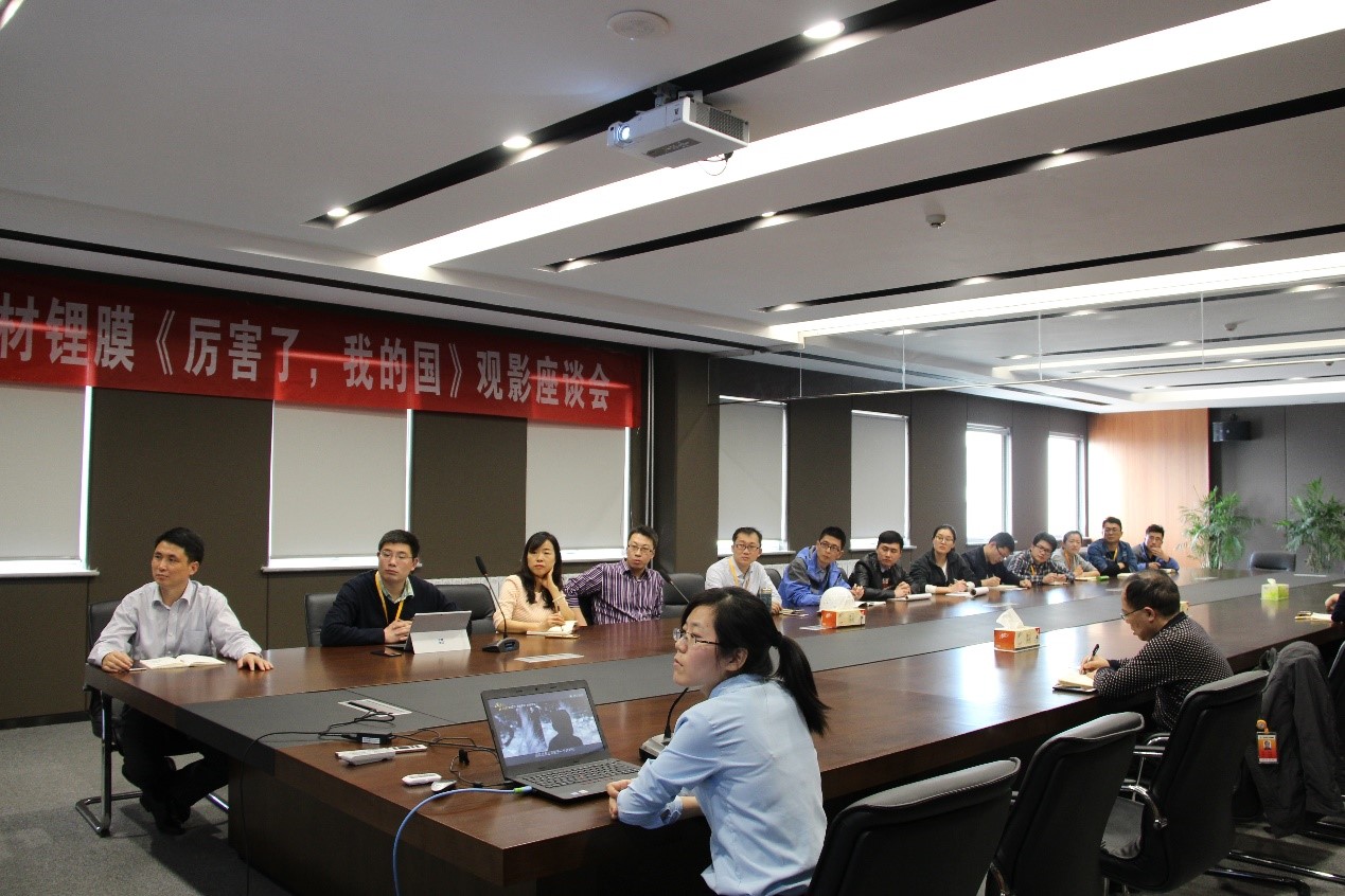 - 近日,大型国产纪录片《厉害了,我的国》全国放映,中材锂膜党总支组织全体党员观看影片并召开座谈会,畅谈观影感受。