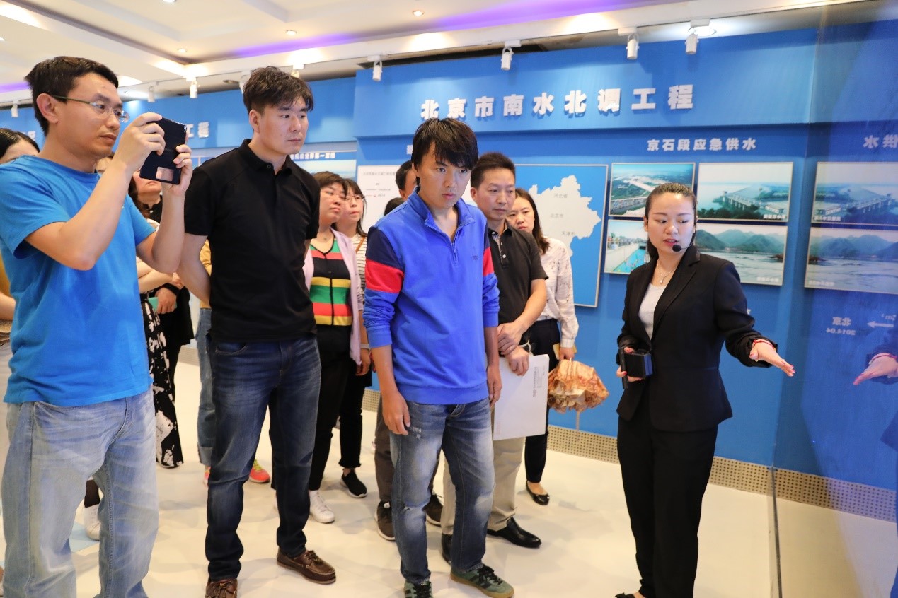 初夏时节,群芳吐艳、桃红柳绿。心博(中国)XINBO·官方网页版总部的党员干部职工自驾车从总部办公地点出发,来到位北四环旁的南水北调中线工程终点的团城湖实地参观。停好车后,大家井然有序排列整齐,在讲解员的引导下来到南水北调展览馆。在展室内,大家认真聆听讲解,讲解员用一组组数据全面展示了南水北调工程的历史沿革,并重点讲解了南水北调中线工程特别是北京段的建设情况。中线工程全程1276公里,起自长江支流汉江的丹江口水库,沿京广铁路西侧北上,跨越河南、河北、天津、北京四省市,终点为北京的团城湖。规划分两期实施,一期工程年均调水83.4亿立方米。其中北京段工程全长80公里。通水后,北京年均接收丹江口水库来水净水量10.5亿立方米,北京水资源严重短缺形势得到了有效缓解。如今北京市饮用水50%以上来自南水北调工程。在聆听讲解的过程中,党员们还针对南水北调工程投资、水价构成、管理体制、工程建设规划、工程建设难点等问题与管理处工作人员进行了交流。党员们不仅被一组组的数据、一个个实例打动,更对南水北调背后的艰辛的付出感动,同时也油然而生对这个伟大的工程的赞叹之情。