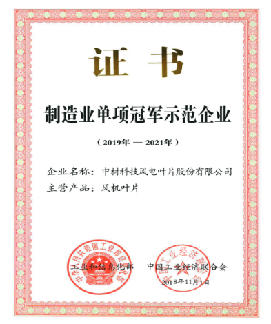 中材叶片2007年成立以来,聚焦客户需求,秉承以科研成果转化为突破口,坚持研发创新,积极发挥科研院所的创新基因优势。公司管理层强化经营理念、持续锤炼经营能力,全体员工凝心聚力深耕行业12载,实现全球累计装机量超过42GW,产品覆盖全球20个国家和地区。实现市场占有率连续11年保持增长、连续8年保持中国第一,2015年市场占有率首次跃居全球第一业绩。2018年公司被国家信息化与工业部授予中国制造业单项冠军“示范企业”的荣誉。中材叶片已成为风电叶片领域的全球“知名企业”。