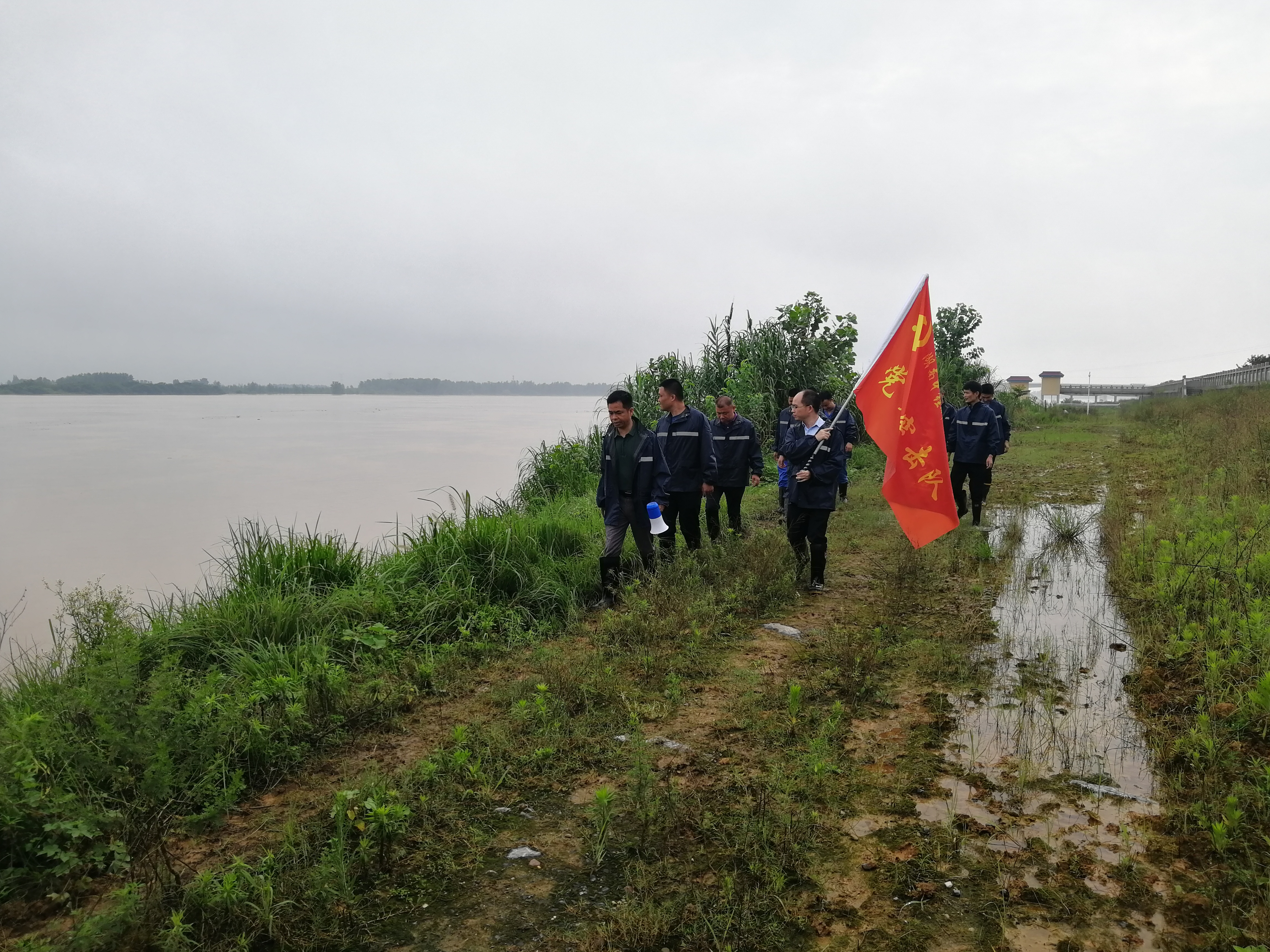 7月11日中午12:10堤段水位达39米,超过警戒水位1.5米,汛情紧急,应当地政府要求,公司迅速增派人力加大巡查频次、力度。公司领导还多次上堤督导工作,总经理白耀宗迅速从山东滕州赶回公司,连夜上堤参加防汛战斗并和突击队员一起参加巡视检查。党员突击队队长胡辉军感慨的说:“累是肯定累,2班倒,但是也值得。你想一想,万一出现险情,就会影响附近居民人身安全、影响到公司的生产、影响公司安全效益。”