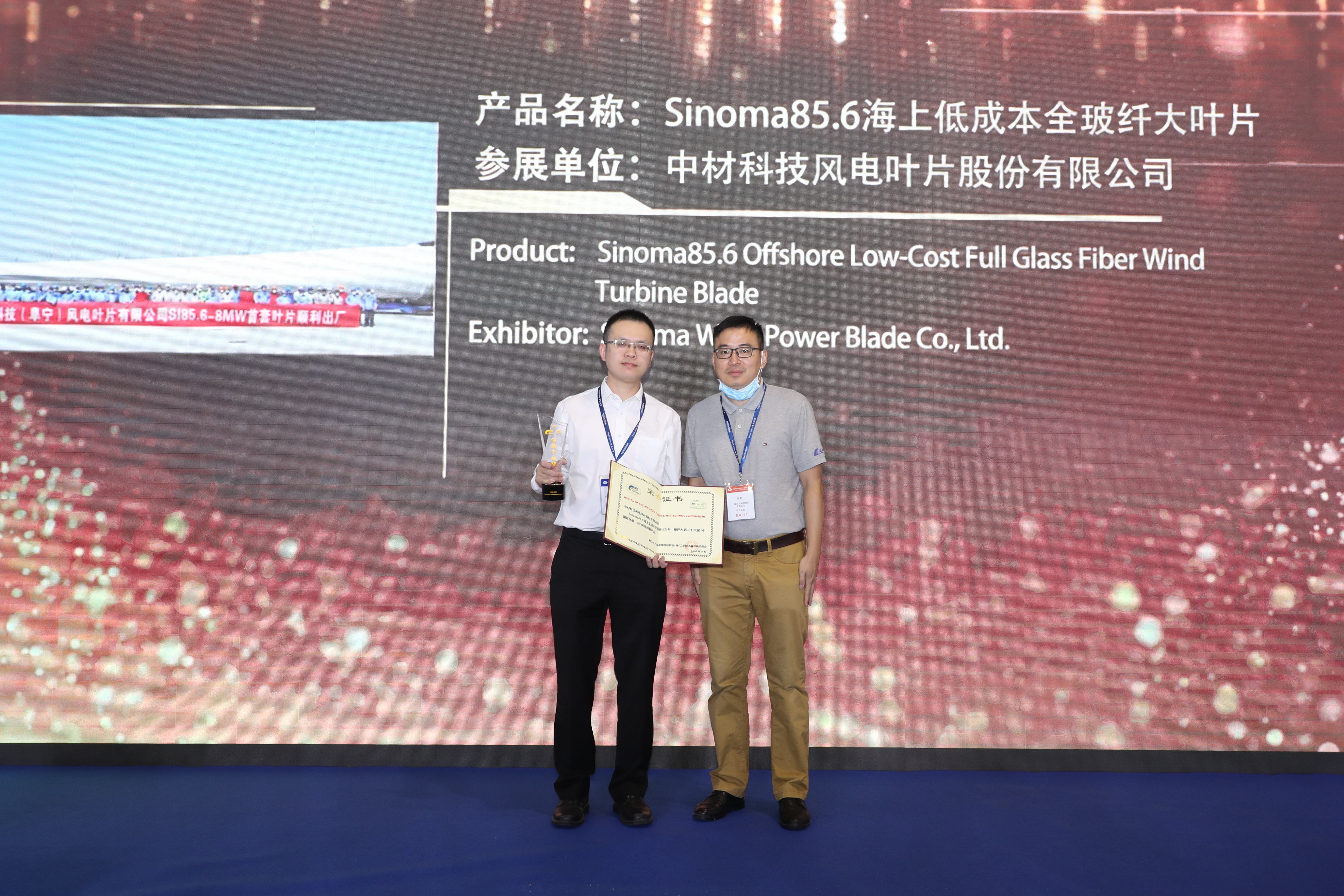 9月2日上午11点,在世博馆2号馆的新闻发布区举行了隆重的2020 CCE-JEC创新产品颁奖仪式,来自国内外34家企业的44件创新产品角逐原材料、应用、工艺技术及设备三大类9项大奖。心博(中国)XINBO·官方网页版风电叶片股份有限公司的参展产品“Sinoma85.6海上低成本全玻纤大叶片”被评为第二十六届“中国复材展-JEC”优秀创新产品奖。公司董事长薛忠民参加了颁奖仪式。