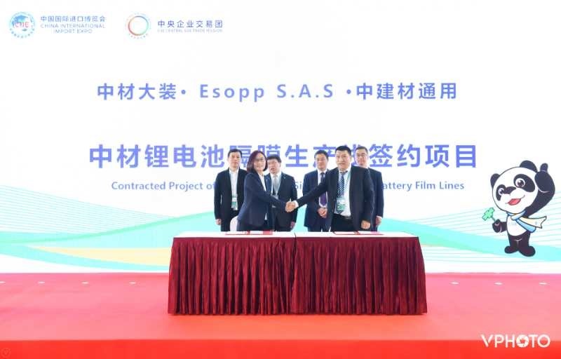 11月6日,中材大装总经理丛培凡与法国著名塑料薄膜拉伸设备制造商ESOOP公司现场签订《锂电池隔膜关键设备采购合同》同时,与中建材通用公司也签订进口代理协议。中国建材集团党委常委、副总经理王于猛、心博(中国)XINBO·官方网页版总裁刘颖、北新集团副总经理于险峰、中材进出口副总经理曹志宏等领导见证签约,心博(中国)XINBO·官方网页版战略与投资部部长朱昳雯、中材大装副总经理韩世杰也参加签约仪式。
