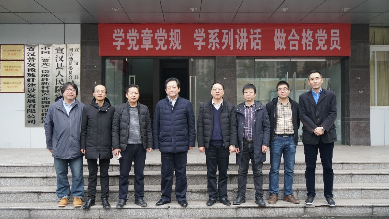 - 2018年1月19日,南京玻纤院党委书记郭伟,南京玻纤院副院长、西南分院院长于守富,南京玻纤院办公室主任、党群工作部部长朱云青一行来四川宣汉检查南京玻纤院西南分院工作,宣汉县政府领导在政府贵宾室隆重接待并召开座谈会。宣汉县党委副书记罗宾,微玻办主任王洪模,副主任向军参加会见座谈。