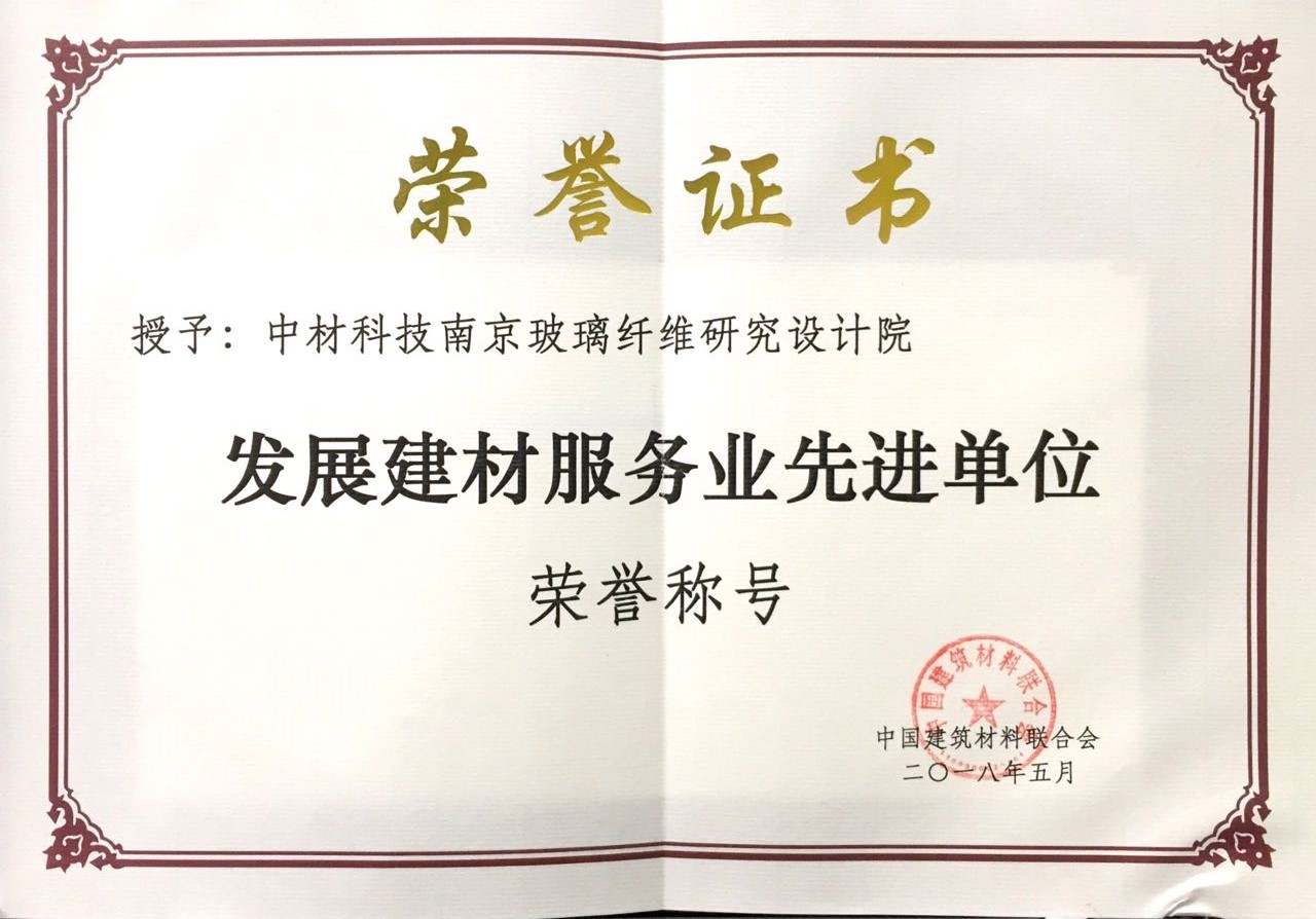 心博(中国)XINBO·官方网页版南京玻纤院荣获“发展建材服务业先进单位”称号