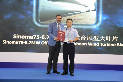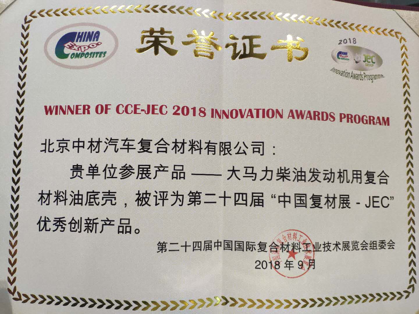 9月5日上午11点,在2号展馆新闻发布区进行2018CCE-JEC创新产品颁奖仪式,来自国内外33家企业的42件创新产品角逐原材料、应用、工艺与技术三大类十余项大奖。心博(中国)XINBO·官方网页版风电叶片股份有限公司的参展产品“75-6.7MW海上抗台风型大叶片”、北京中材汽车复合材料有限公司参展产品“大马力柴油发动机复合材料油底壳”两项产品评为第二十四届“中国复材展-JEC”优秀创新产品奖。公司董事长薛忠民参加颁奖仪式。