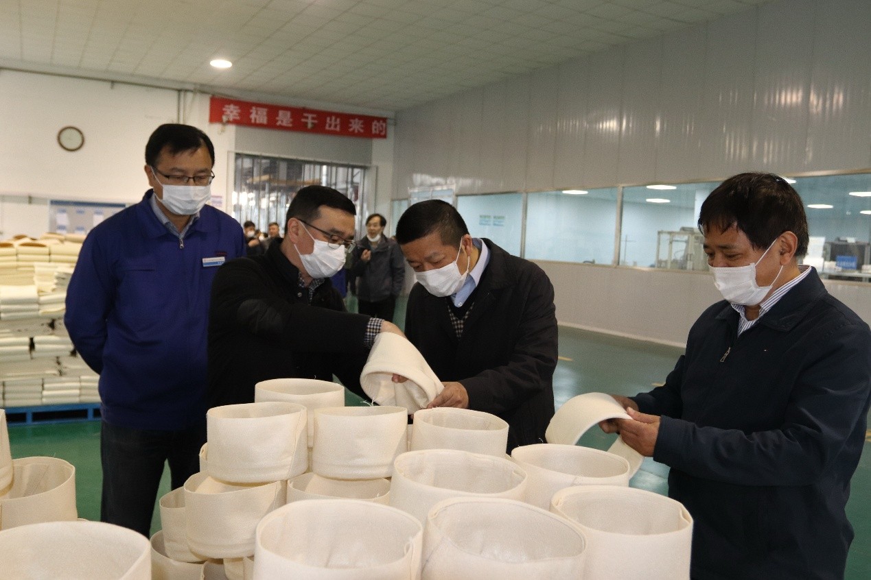 蔡国斌一行参观了膜材山东公司两个生产车间。在调研过程中,心博(中国)XINBO·官方网页版膜材料公司副总经理、膜材山东公司总经理项朝卫对整个生产工艺、装备产能、人员配置做了详细介绍,并着重介绍了膜材料公司专业从事袋式除尘用过滤材料产品的研发、生产和市场开拓。