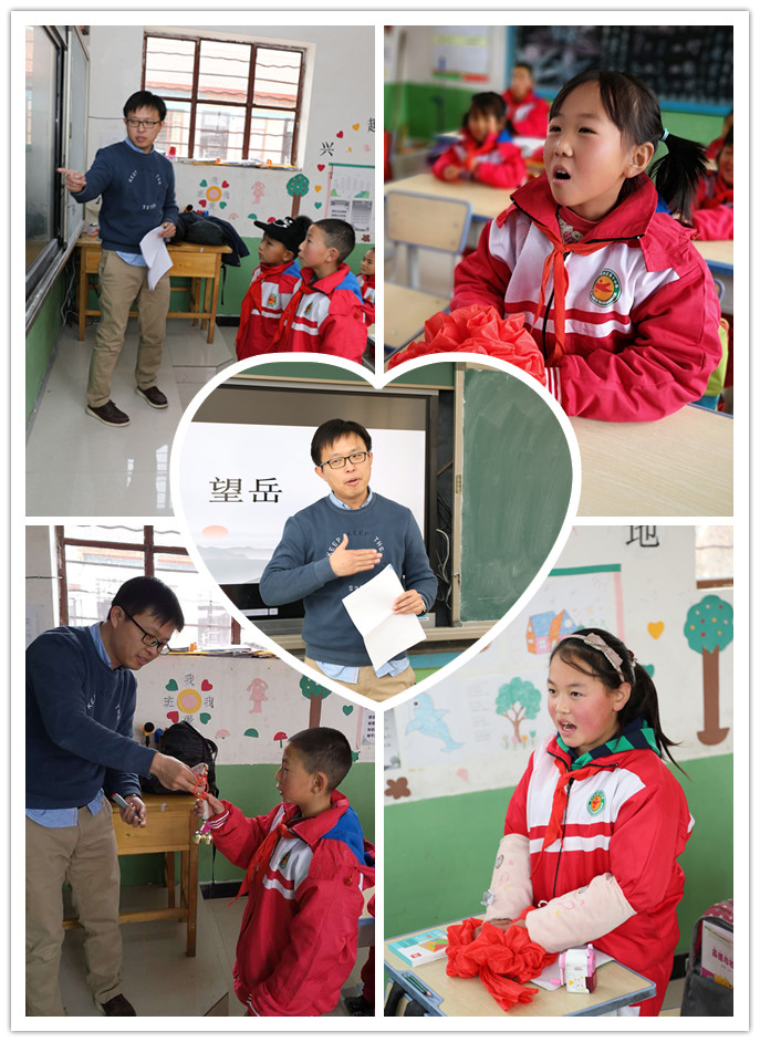 泰山玻纤李彦军从中国传统文化的古诗词入手,以唐代大诗人杜甫《望岳》这首诗为切入口,讲解了诗词的变迁、诗人的经历以及当时的历史小故事等,给孩子们全面展示了泰安的人文、地理和“泰山文化”的特点,拓展了孩子们的眼界,增加了对外界的憧憬和期待。