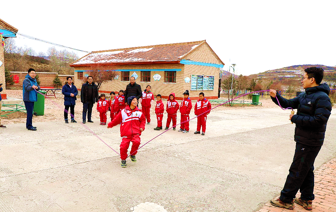 课后公司青年和孩子们一起进行体育活动,欢笑声、加油声在小学里回荡。