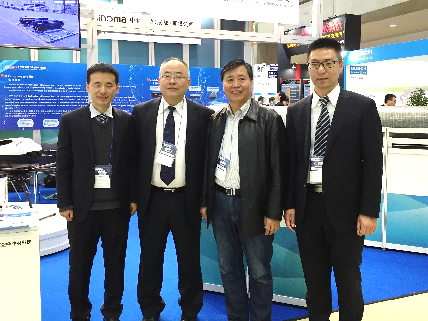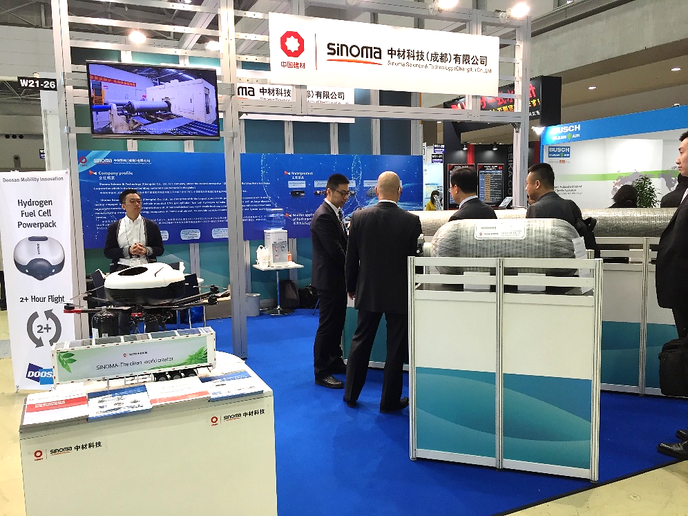 心博(中国)XINBO·官方网页版(成都)有限公司受邀参加本次展览会,宣传主题突出“新能源、绿色低碳、科技创新”的高新技术企业形象,主要展示了70Mpa/66L车用燃料电池氢气瓶、35Mpa /320L车用燃料电池氢气瓶(单瓶最大容积)、大口径复合材料储氢运气单元及系统(模型)、氢燃料无人机及系统等产品。本次展会是成都中材首次在海外推出70Mpa/66L燃料电池氢气瓶和35Mpa/320L车用氢气瓶,一经推出就受到市场的广泛关注,目前,公司已经形成年产2万支氢气瓶生产能力。在展会现场,此款新产品引起众多观众和媒体的兴趣,多家厂商前来咨询。