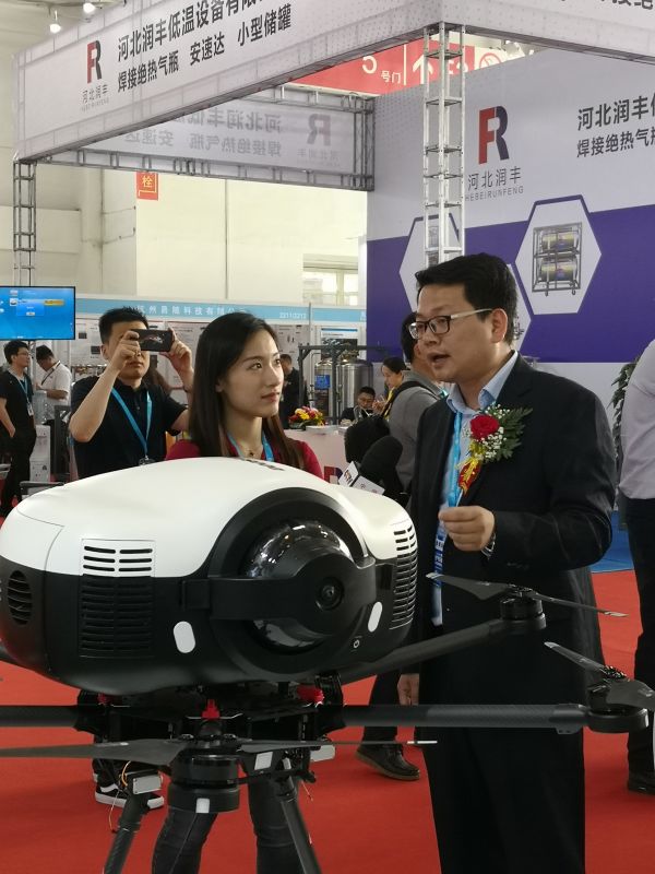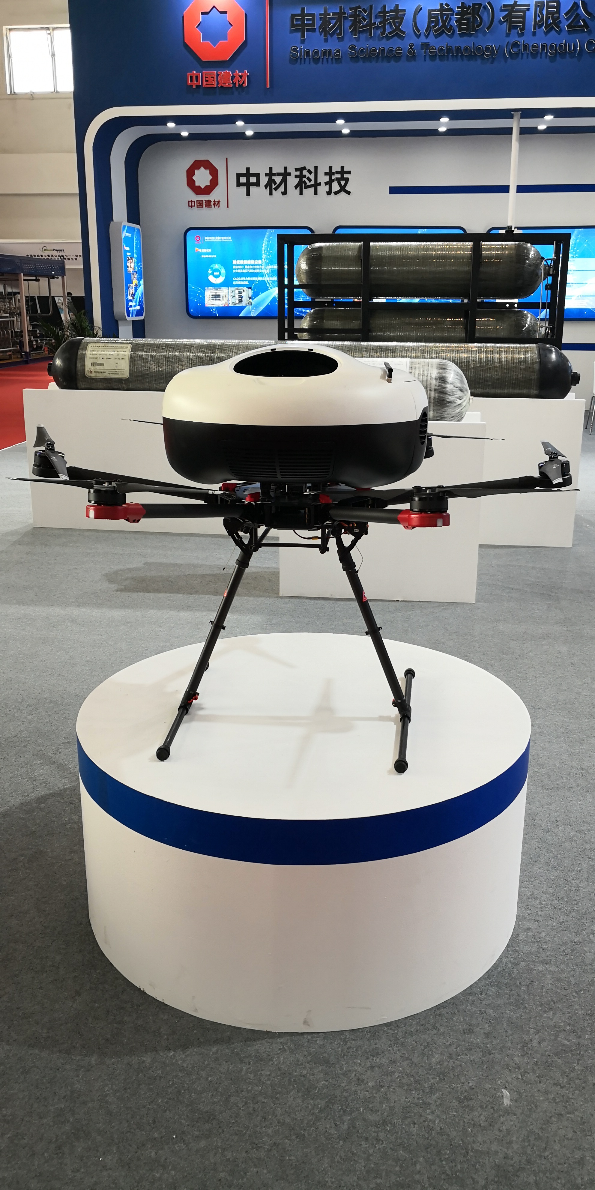 本次展会成都有限配套韩国斗山首次在国内展出无人机及氢气瓶系统,此款产品是专门针对工业巡航市场研发,一经推出就受到市场的广泛关注,目前与韩国斗山集团达成战略合作协议,已经实现批量供货。新产品的优势在于,与传统锂电池续航时间20-30分钟相比,氢燃料电池的续航时间可以达到2-3个小时,满足绝大部分客户的需求。氢燃料无人机的亮相也吸引了央视记者关注,在展会现场对销售总监李桦圣进行专门采访。