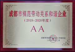 近日,经成都市协调劳动关系三方委员会评审,成都有限荣获成都市模范劳动关系和谐AA级企业称号,此次获奖体现了成都有限在创建和谐劳动关系方面的不懈努力和以人为本的发展理...