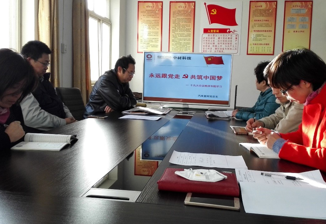 11月2日下午,北京中材汽车复合材料有限公司党总支专题学习了党的十九大报告精神。汽车复材总支书记王顺喜同志主持学习会。 党的十九大是在全面建成小康社会关键阶段、中国特色...