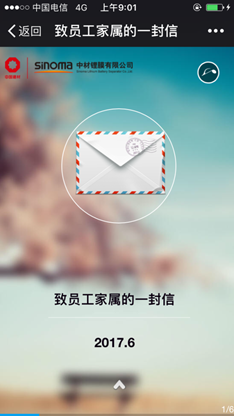 近日,中材锂膜每名职工家属的手机都接到一封温馨的电子书信。为有效提高员工安全生产责任意识,确保公司各项安全生产工作文明有序的开展,中材锂膜以安全生产月为契机,开展...